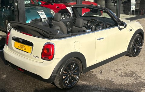 A frequently requested Mini Convertible Cooper 1.5 with the Chili pack. Offered with a file of service workshop visit documents and two former keepers recorded in the V5 registration document. Finished in Pepper White with a black hood matched with Carbon Diamond Half Leather upholstery. Specified upgrade extras include: Chili pack, DAB Visual Boost tuner, Reversing camera, 17" Cosmos spoke design alloy wheels in gloss black, Indicators in white. Standard features include: Power folding hood with partial open 'sunroof' function, Three spoke sports leather multi-function steering wheel, Cruise control with brake function, Speed Limiter, Remote audio controls, Tyre pressure monitioring system, Sports seats, Half leather upholstery, Alarm, Immobiliser, Front seats with height and lumbar adjustment, Isofix, Storage pack, Mini Excitement pack, Mini Driving Modes, Rain sensor wipers, Auto headlights, Dual zone auto climate control air conditioning, Multi-function trip computer, Ambient interior light pack, Electric windows, Electric mirrors, Heated mirrors and washer jets, Remote central locking, Rear parking sensors with audible and visual notifications, Bluetooth for phone and audio, Fog lights, Keyless push button start, Multiple airbags, Front seat passenger airbag isolation facility, ULEZ compliant. With its generous specification at a sensible price point, this Convertible Cooper is worth checking out!  We operate by appointment only Monday - Saturday, please telephone or email us to arrange a time; do not arrive unannounced as we might be closed and will not be able to assist you.Â